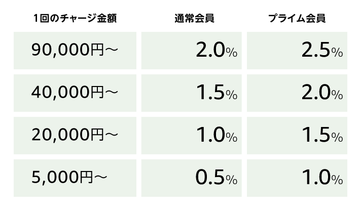 Amazonチャージはポイントバックキャンペーンは、一回の購入額が大きい方が還元率が高くなるようになっています。