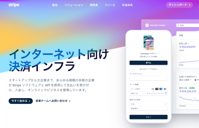 stripeは自分のネットショップ用に決済ページを作成できて、お客さんにクレジットカード決済してもらって代金の受け取ることができます。